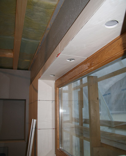 Badkar med LED-ljus i nederkanten, infälld väggbelysning och stor regndusch. I detta exklusiva badrum kan man njuta fullt ut. Platsbyggda hyllor, skåp och möbler har anpassats helt efter kundens önskemål och skapar extra plats samtidigt som badrummet är mycket enkelt att städa. Lösningarna för belysningen är mer avancerade än vad ögat först avslöjar. Rörelsesensorer vid golvet tänder ett mjukt sken när man kliver in i badrummet och ljussättningen i rummet kan anpassas utifrån den stämning man önskar – från mysbelysning för kvällsbad till full styrka när man behöver se extra bra. Exklusivt badrumsporslin och armaturer ramar in helhetsintrycket och skapar ett badrum som kommer att skänka trivsel i många år framöver.