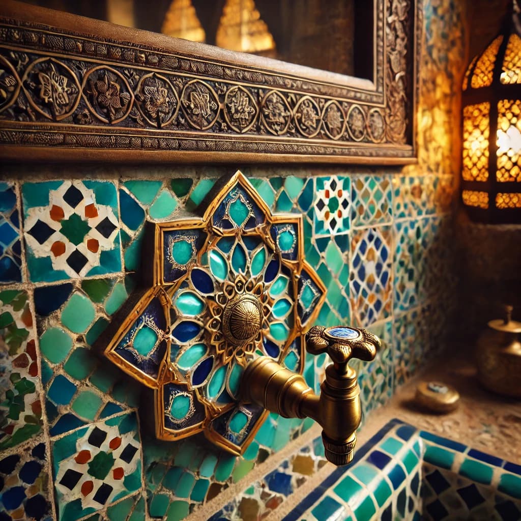 Kakel och mosaik i ett marockanskt badrum