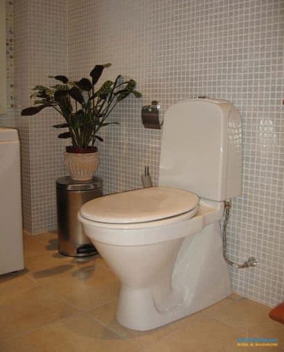 Unikt badrum med inkaklad spegel