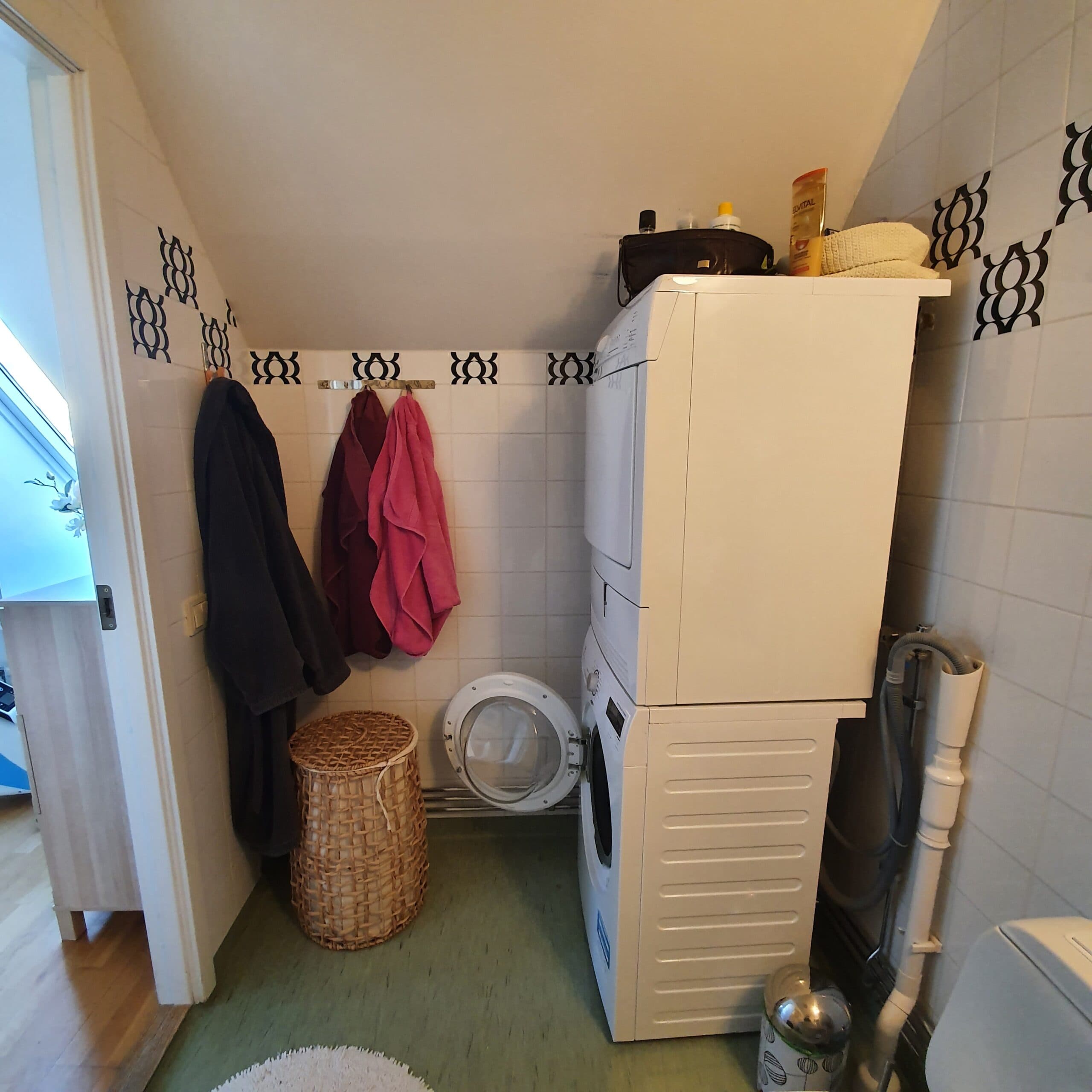Praktiskt med bänkskiva över tvättmaskiner och torktumlare